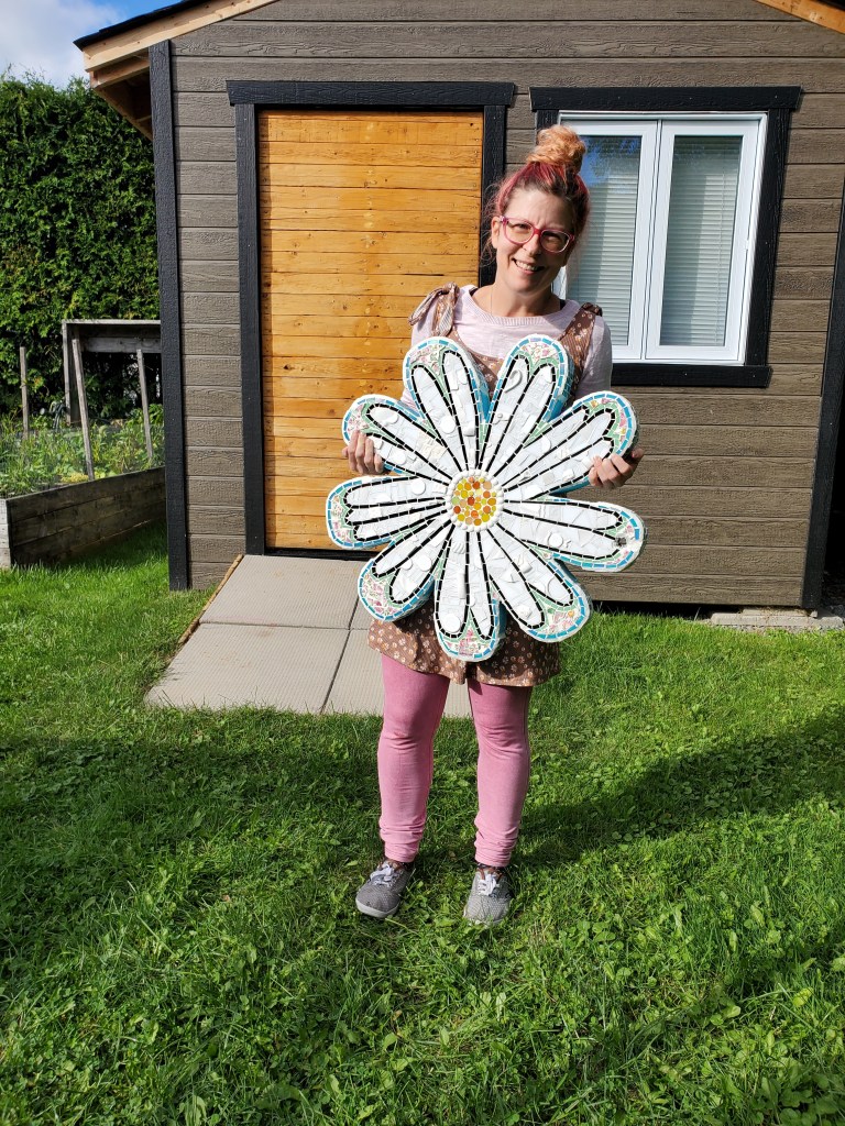 Marguerite, dimension environ 2 pieds, installée en 2022, dans le sentier culturel Nakkertok, au 82 rue du Carrefour à Vals-des-Monts.